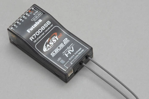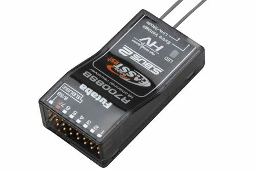 The R7000SB is a FASSTest telemetry enabled receiver, a high-voltage design that operates up to 8 channels using the 8 standard PWM outputs or up to 18 channels (16 proportional + 2 digital) using the S-Bus port.